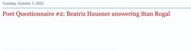 Poet Questionnaire: Beatriz Hausner answering Stan Rogal